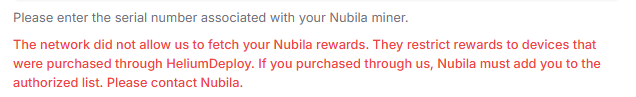 The network did not allow us to fetch your Nubila rewards. They restrict rewards to devices that were purchased through HeliumDeploy. If you purchased through us, Nubila must add you to the authorized list. Please contact Nubila.