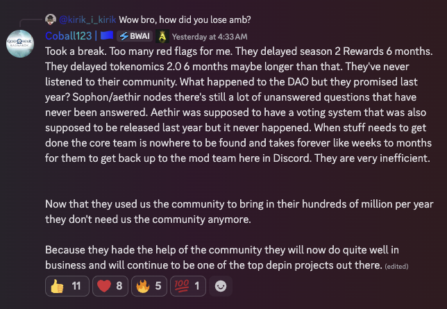 Was gathering some talking points for the Community call and stumbled upon the disappointment going on with Aethir.